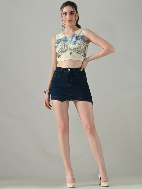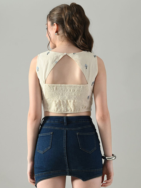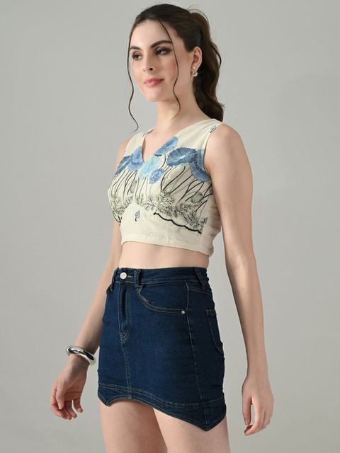 - Off white and blue crop blouson top