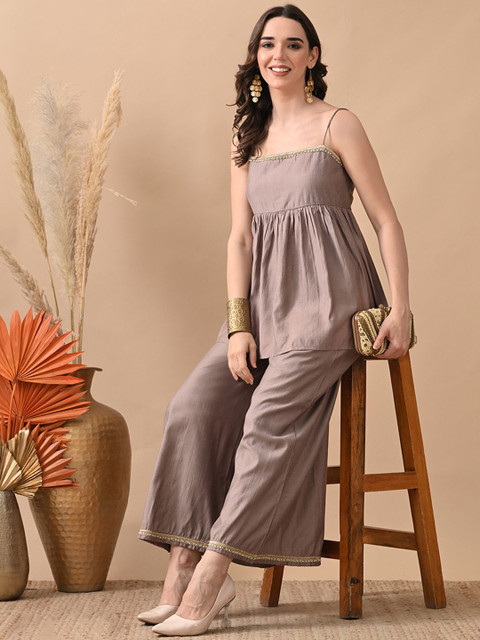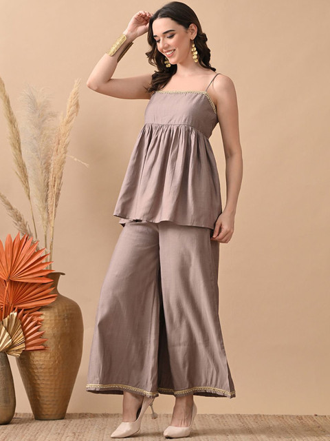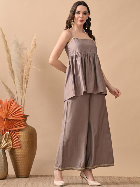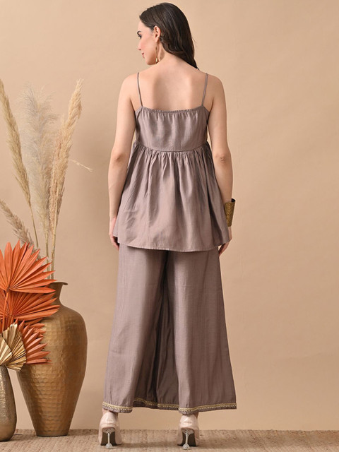 Grey self design co-ords has top and trousers
