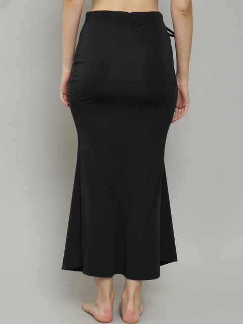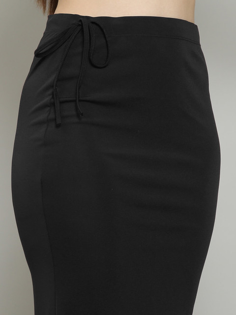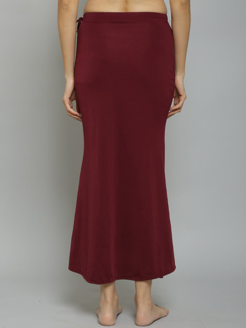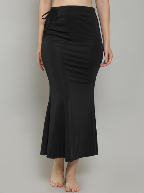 Pack of 2 solid fish cut saree shapewear in black & Maroon, each has an elasticated waistband with drawstring closure, a slit and straight hem