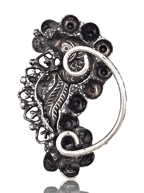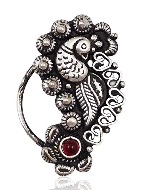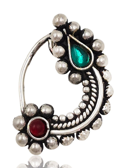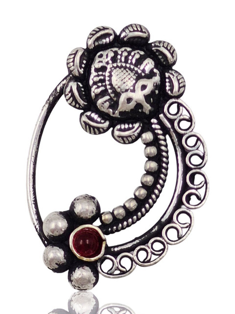 Set 1: Silver toned and red maharashtrian stud nosepin, has artificial stones studded details