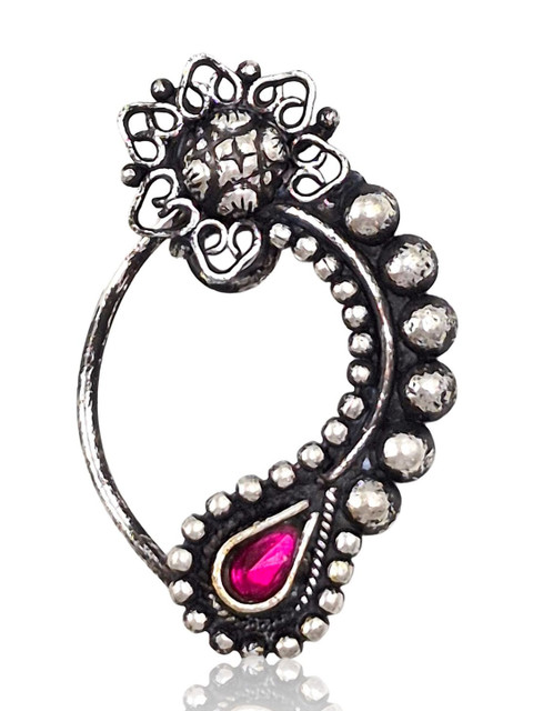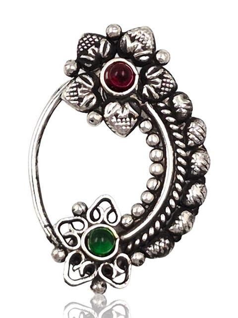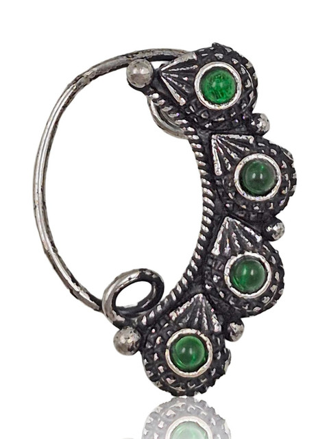 Set of 3 gold-toned, green & pink oxidised artificial stones studded details nosepins