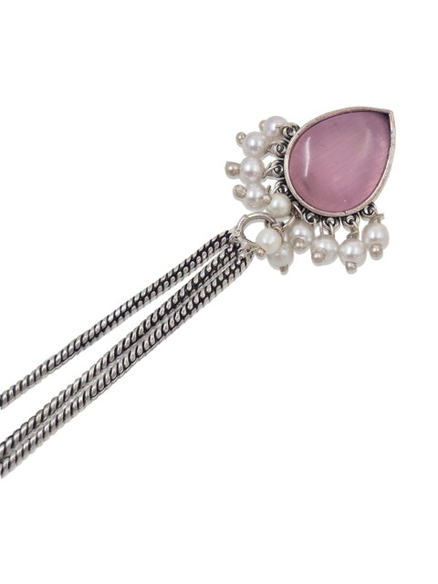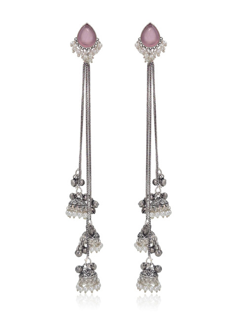 Silver-toned and Pink Teardrop Shaped Drop earrings, Silver-Plated, has Artificial Stones