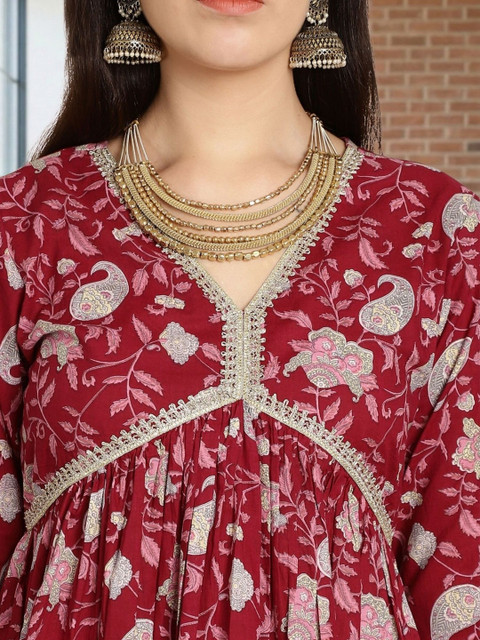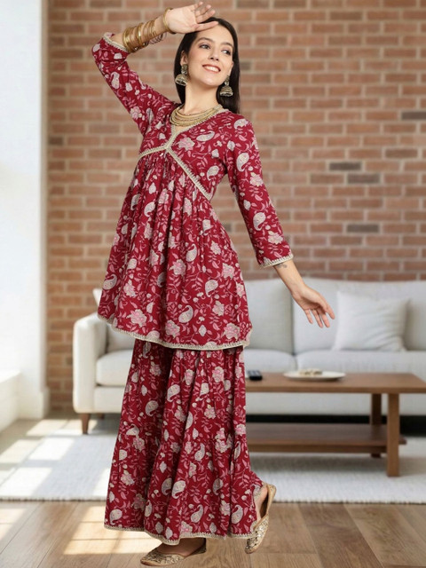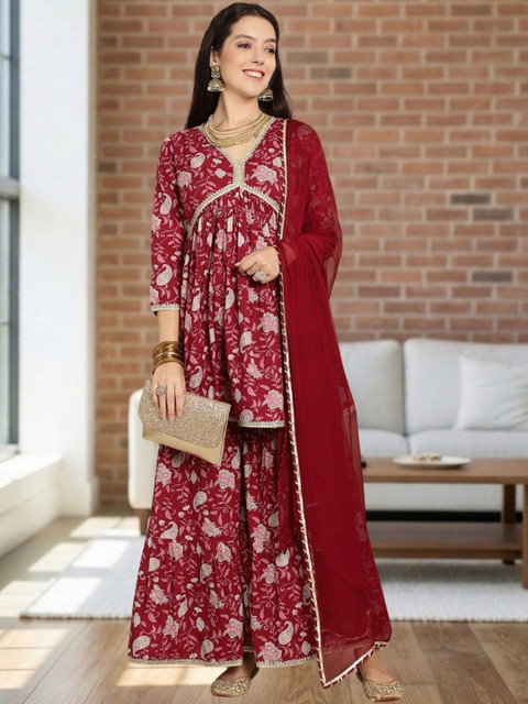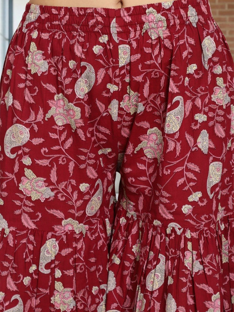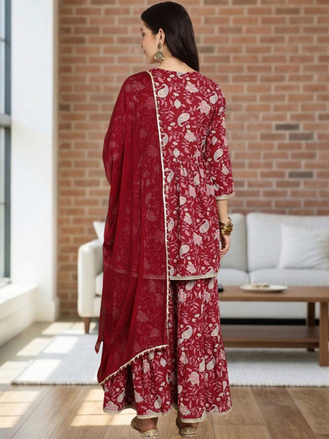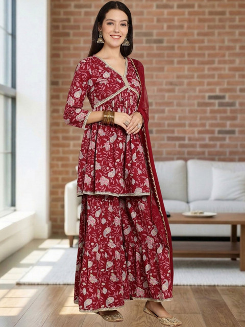 Burgundy Yoke Design Kurta with Sharara With Dupatta