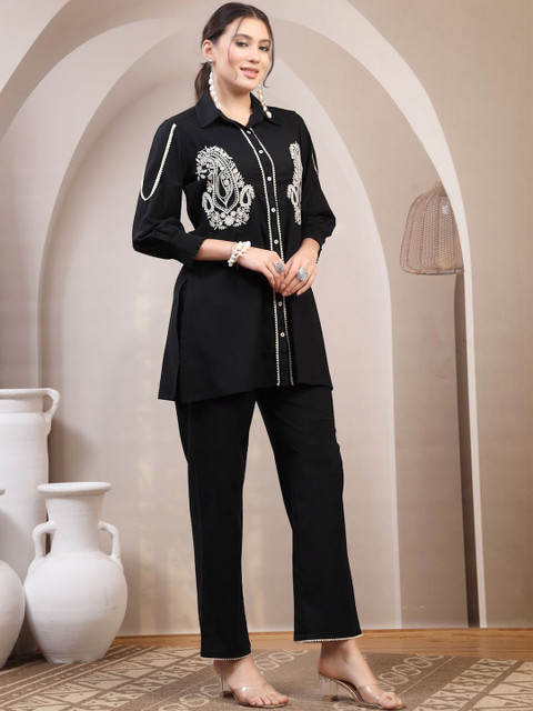 Black and white Embroidered tunic with Trousers