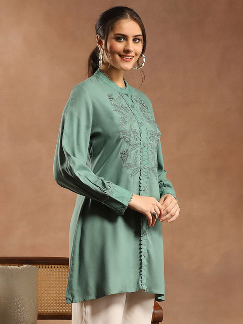Nayam By Lakshita Solid Embroidered A-line Viscose Rayon Tunic for Women