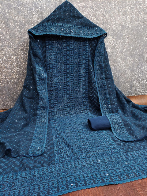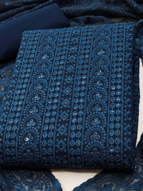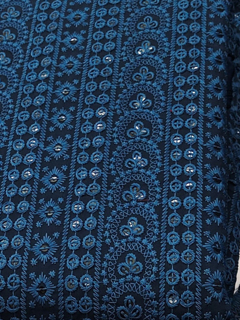 Blue floral lucknowi chikankari embroidere kurta fabric
