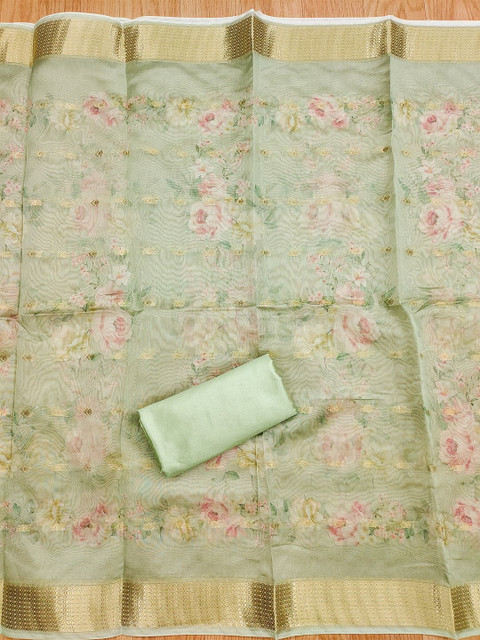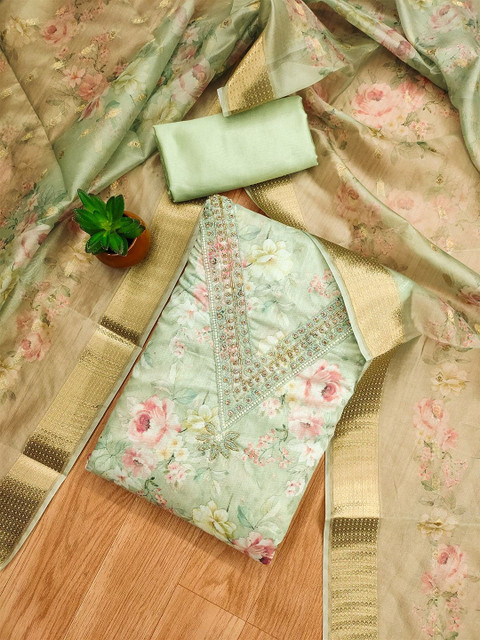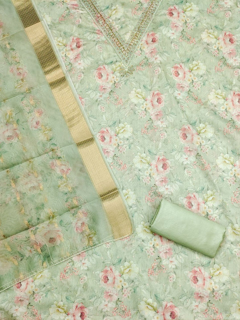 Green printed unstitched dress material