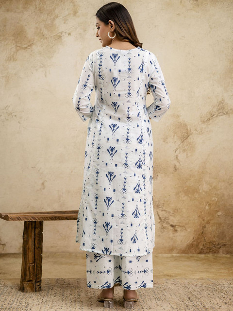 white printed palazzos, has an elasticated waistband with slip-on closure