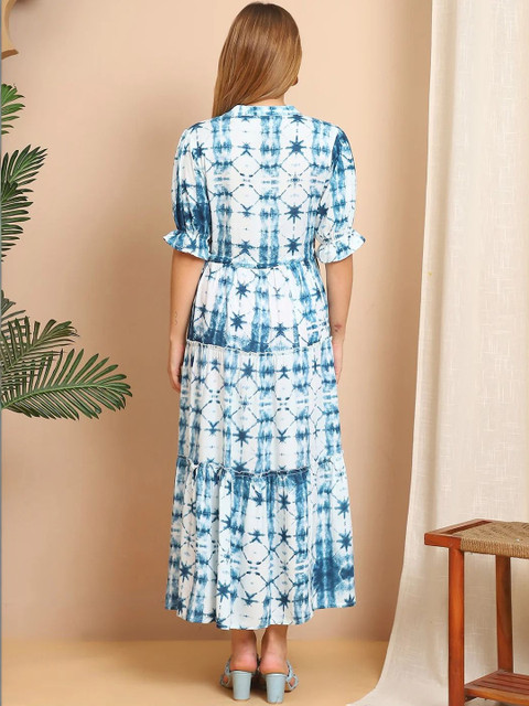 - White and white tie and dye dyed a-line dress