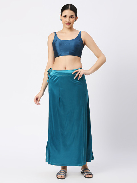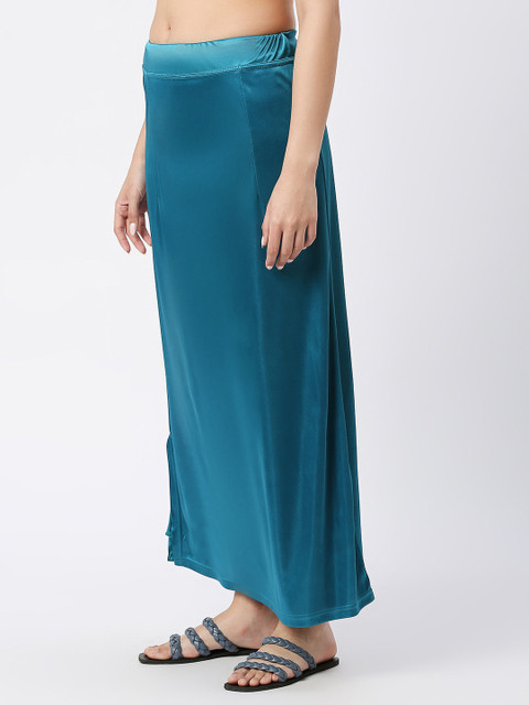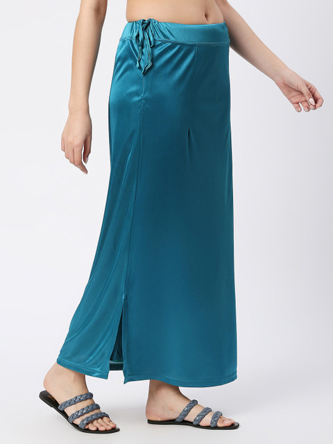 Solid straight midi saree shape wear, has an elasticated waistband, drawstring closure, hugged fit for figure flattering look, and straight hem