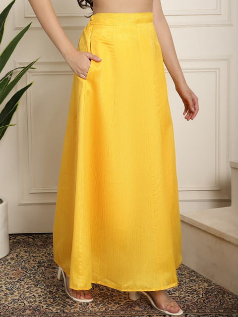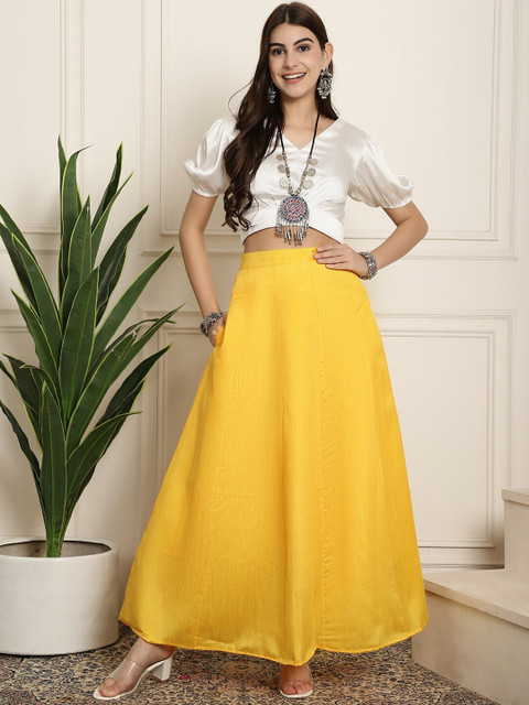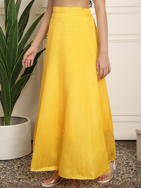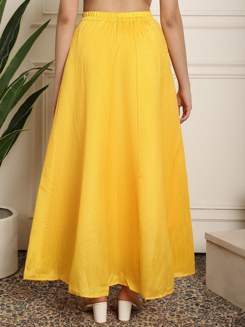 Yellow solid flared maxi skirt, has an elasticated waistband with slip-on closure, flared hem & 1 pocket