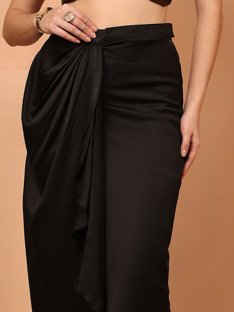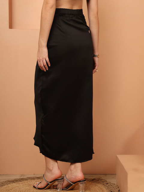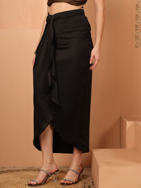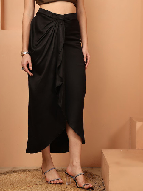 NEUDIS Women’s Black Satin Wrap Skirt, Asymmetric Hem