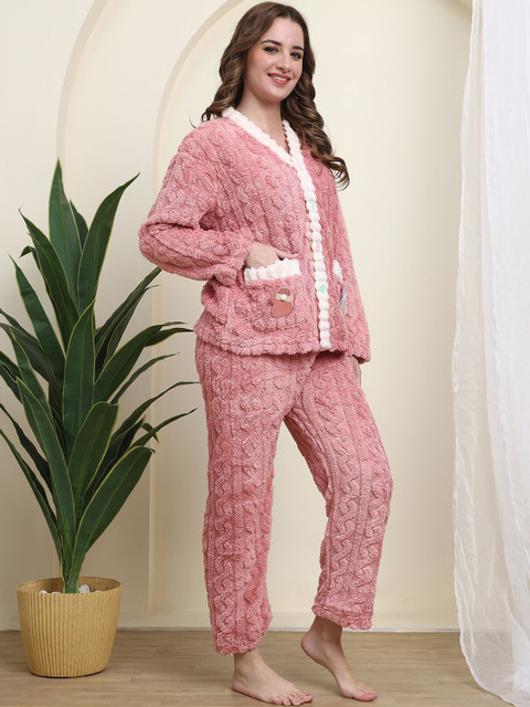 COZY MATERIAL: Luxuriously soft plush fleece nightsuit designed for ultimate winter comfort and warmth, perfect for chilly evenings