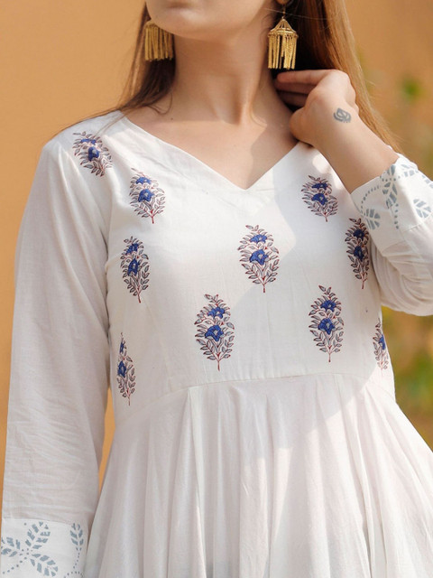 NEW STYLISH Women Floral Printed Thread Work Floral Anarkali Kurta