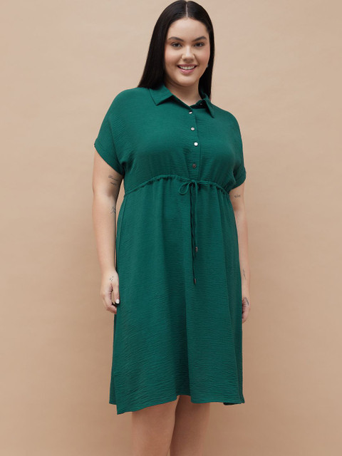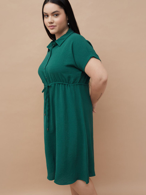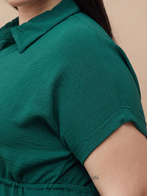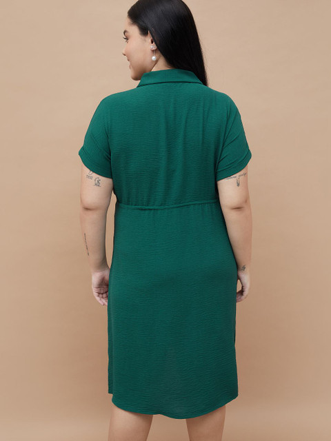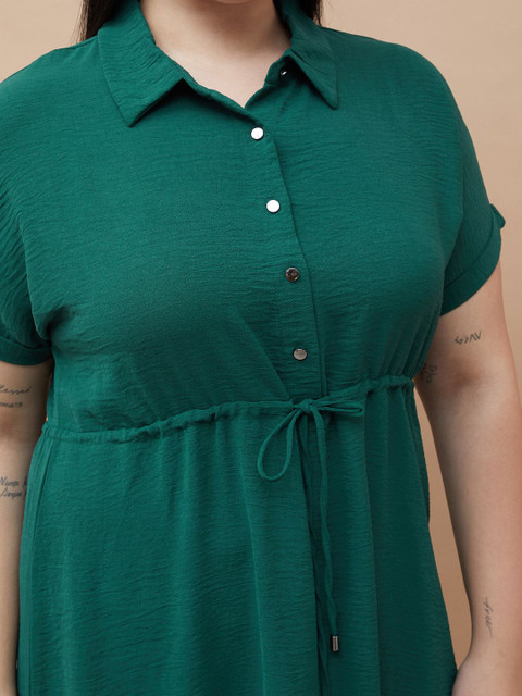 - Green solid shirt dress