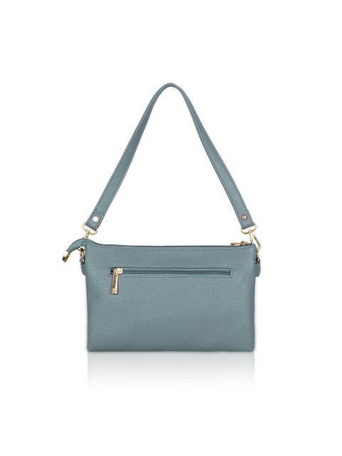 Teal textured sling bag 3 main compartments, has a zip closure, na external pockets, 3 inner pockets