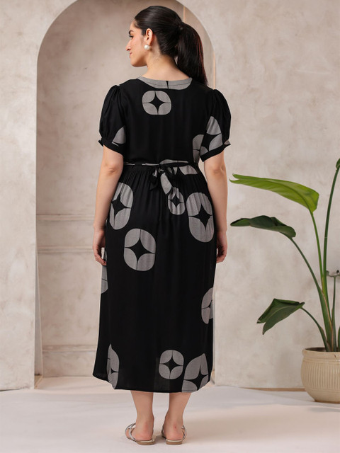 - Black and geometric print fit & flare dress
