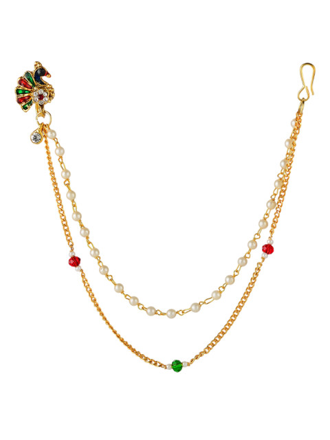 Gold-toned, green and white artificial stones and beads chained insert closure, gold-plated