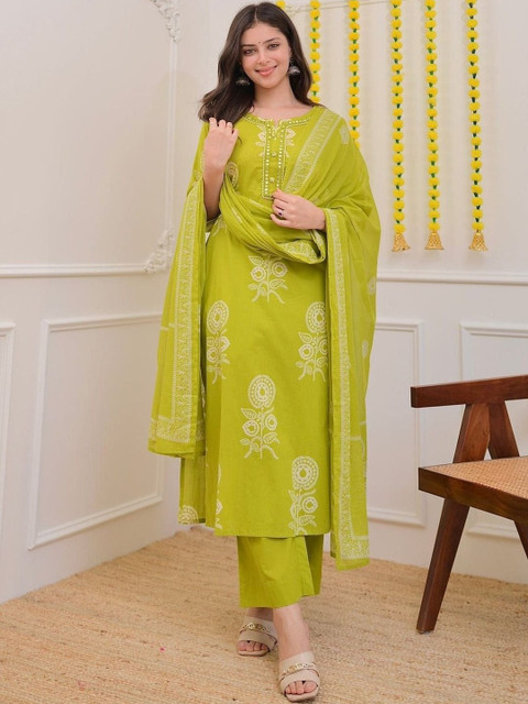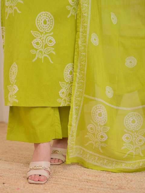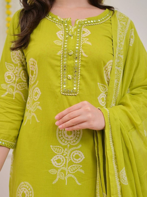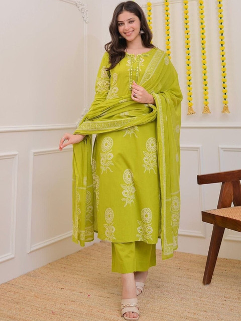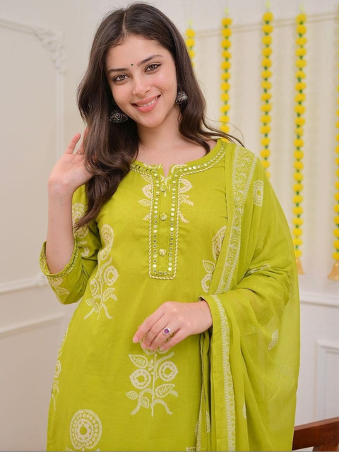 Green Printed Kurta with Pyjamas With Dupatta