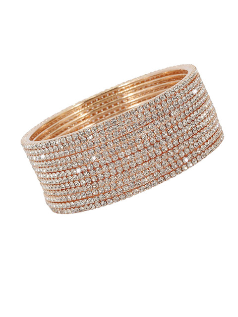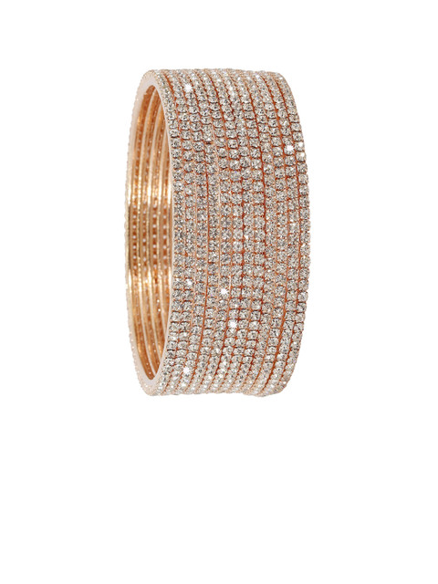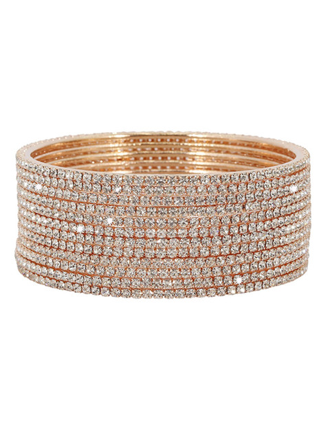 Set of 12 rose gold-plated bangles, each has white stone-studded, secured with slip-on closure