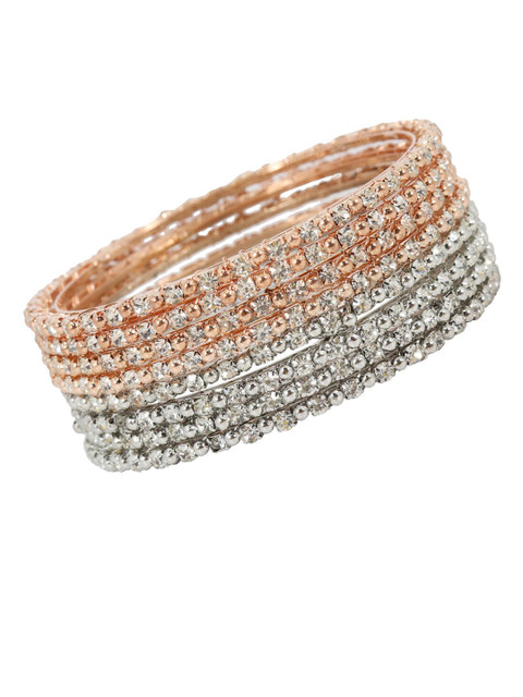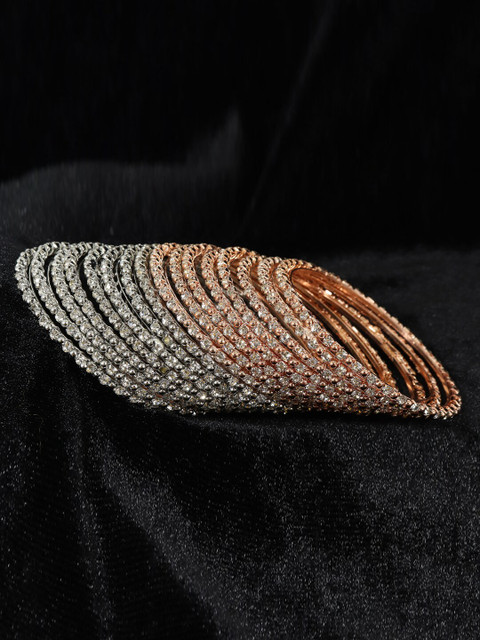 Set of 8 rose gold-toned bangles, each has a white zircons gemstones studded details, secured with slip-on closure