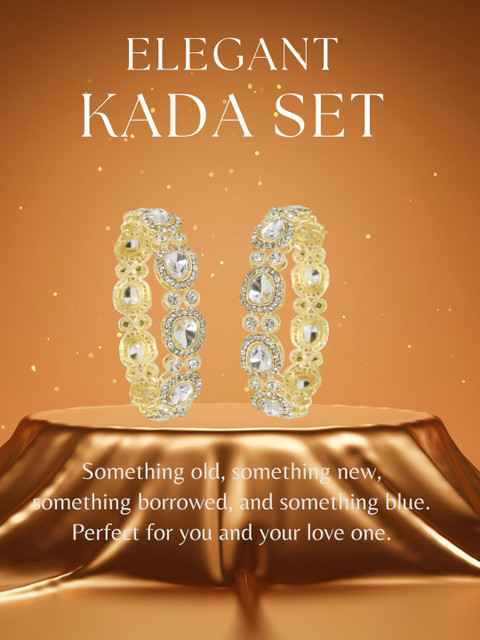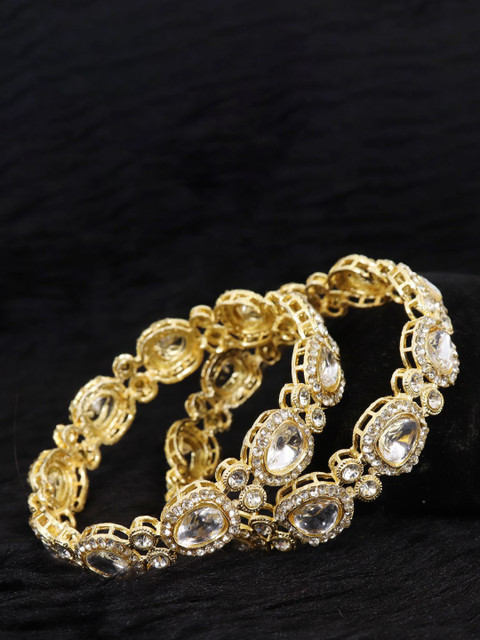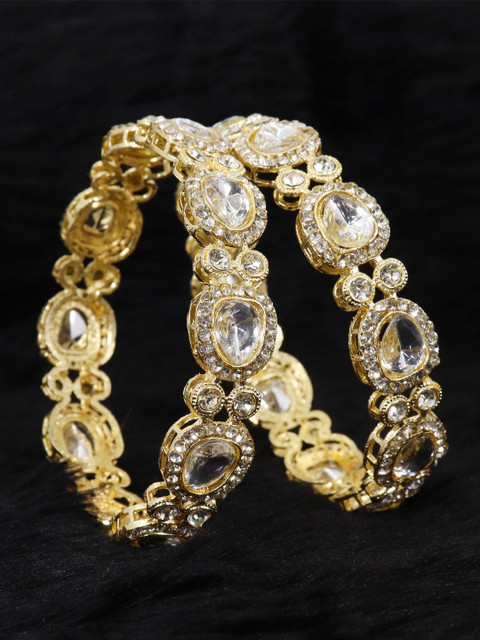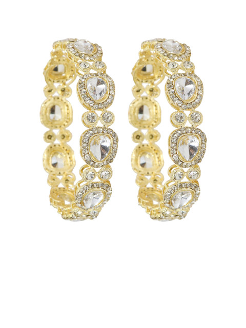 Set of 2 gold-toned bangles, each has white AD stone-studded details, secured with slip-on closure