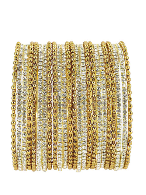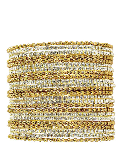 Set of 12 silver toned white cubic zirconia-Studded Bangles, secured with a slip-on closure