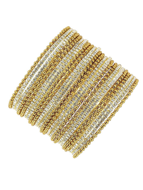 Set of 12 Gold toned Ball chain linked glossy Bangles, secured with a slip-on closure