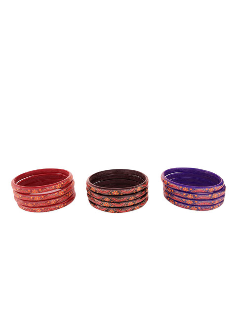 Set of 4 each printed bangles in black, red , purple, maroon, green and yellow, has a slip-on closure