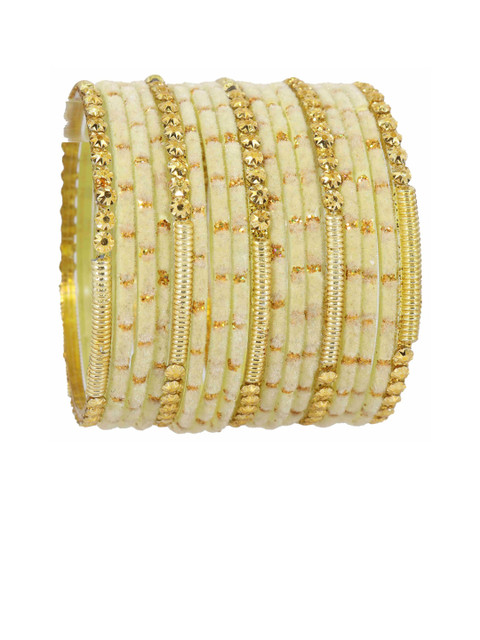 Set of 24 cream colored bangles set, each has velvet with dot details, secured with a slip-on closure