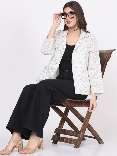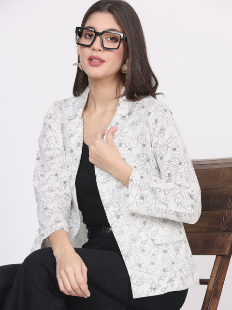 Nomad Lifestyle Floral Printed Notched Lapel Long Sleeves Single -Breasted Blazer