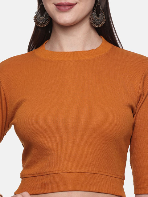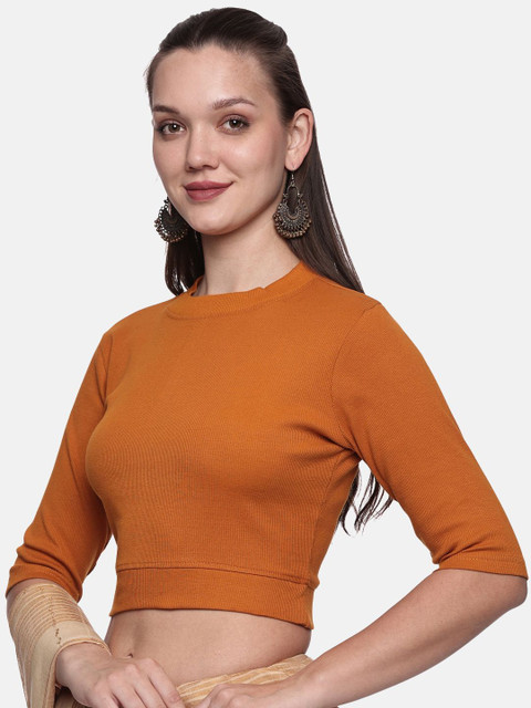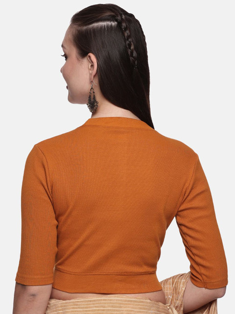 NOT YET by us Round Neck Ribbed Stretchable Saree Blouse