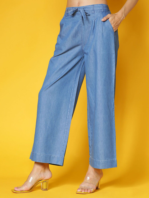 These offer a breezy, relaxed silhouette with their wide-leg cut — very comfortable for daily wear. The woven cotton fabric feels lightweight and breathable, making them great for warm weather. The partially elasticated waistband ensures a decent fit without being too tight. On the downside, the simple solid design may feel a little plain — would pair best with a bold top to spice things up.