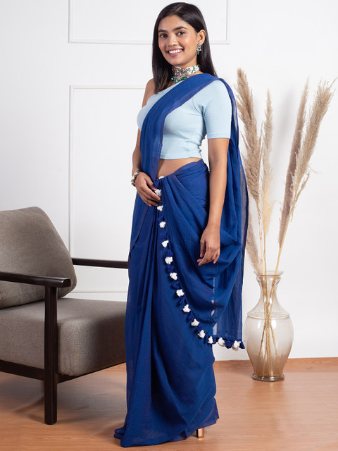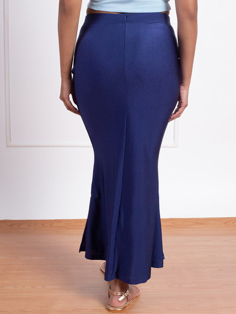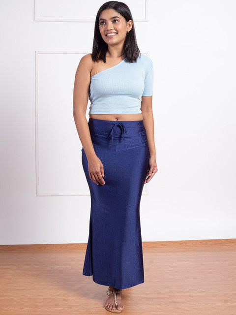 navy blue solid saree shapewear, has an elasticated waistband with drawstring closure, a slit and straight hem