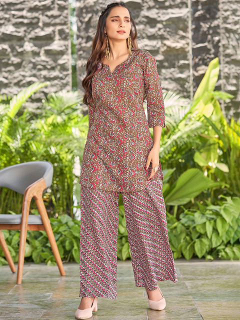 2 reviews for ODD BY chansi TRENDZ Printed Round Neck Tunic With Palazzos
