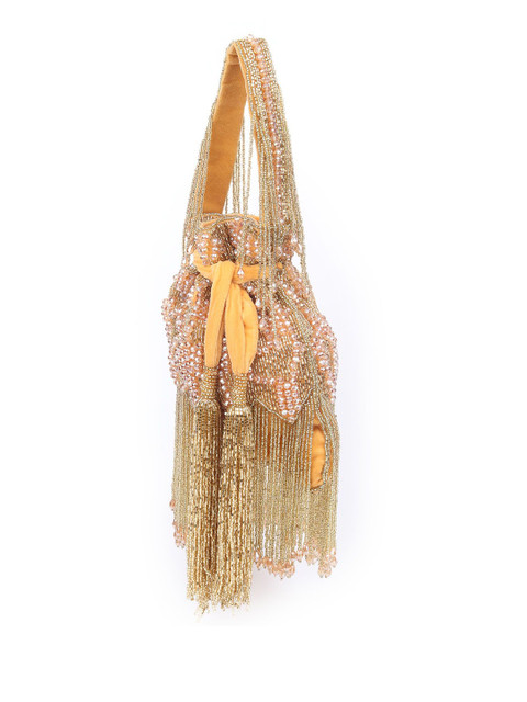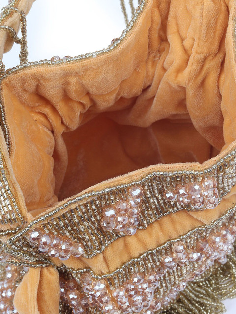 Mustard yellow & pink embellished potli clutches