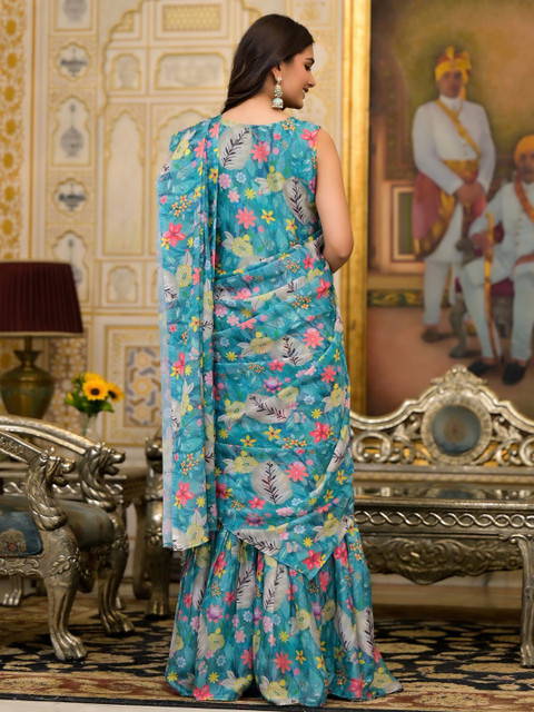 - Floral printed saree with no border border