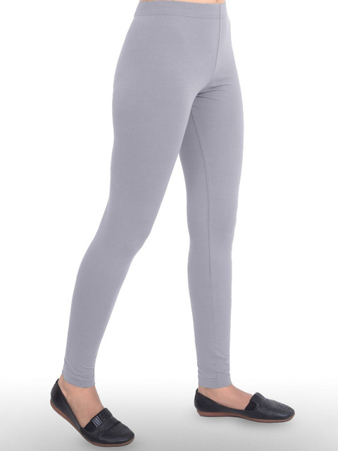 Grey solid high-rise ankle-length leggings, has an elasticated waistband with slip-on closure