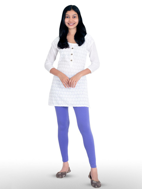 Purple solid high-rise ankle-length leggings, has an elasticated waistband with slip-on closure