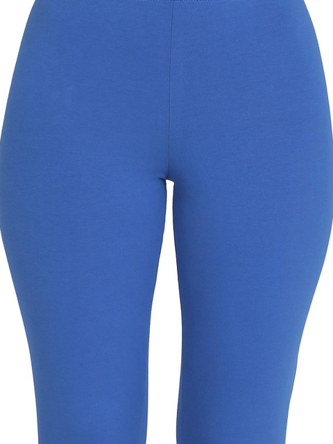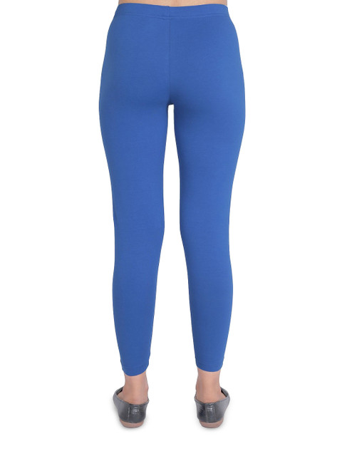 Blue solid high-rise ankle-length leggings, has an elasticated waistband with slip-on closure