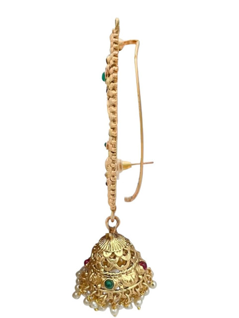 Gold-toned and Pink Contemporary Ear Cuff, has Artificial Stones and Beads