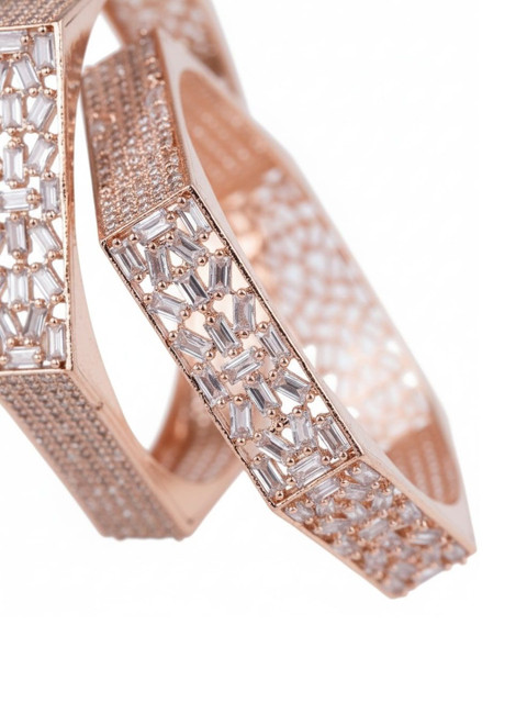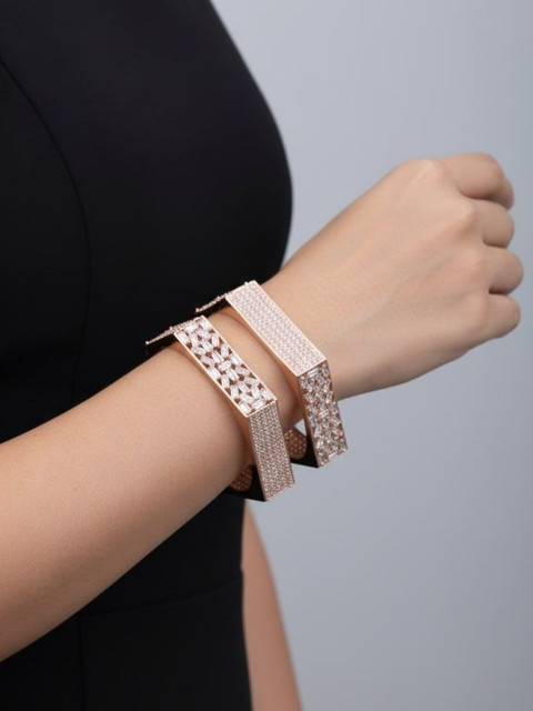 Set of two rose gold-plated bangles, each has white american diamond studded details, secured with slip-on closure