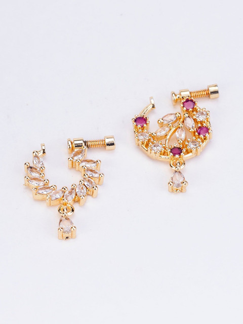 Adorn your nose with these exquisite Floral Gold Plated Combo Nose Pins. Crafted with intricate floral designs in premium gold plating, these nose pins exude a luxurious and exclusive charm. Elevate your style and add a touch of elegance to any outfit with these beautiful nose pins.