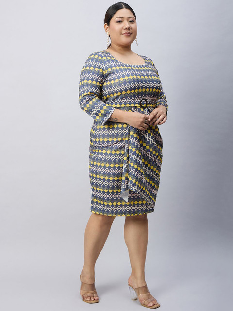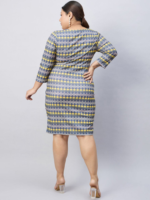 - Grey geometric print sheath dress