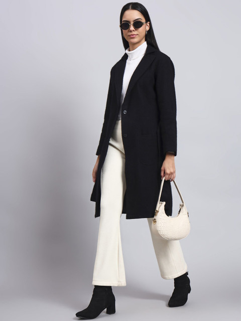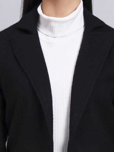 Black solid regular-fit casual blazer, has a notched lapel, long sleeves, single-breasted with single button closure, two flap pockets, one welt pocket and a ventless-vented back hem