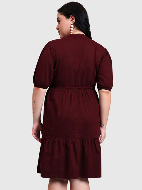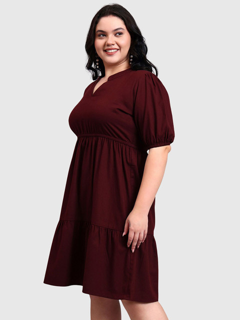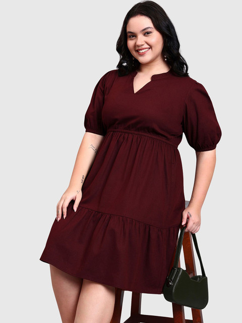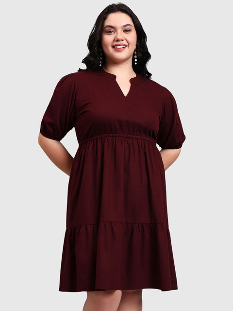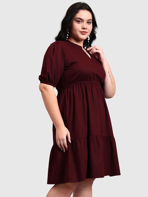 - Maroon solid fit and flare dress