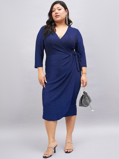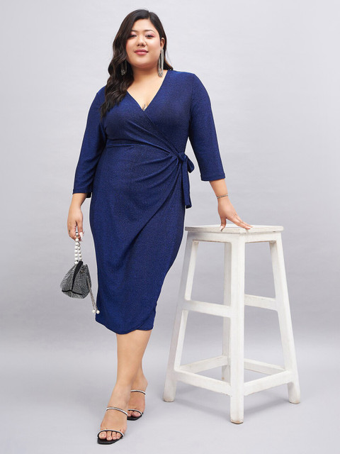 - Blue solid wrap dress