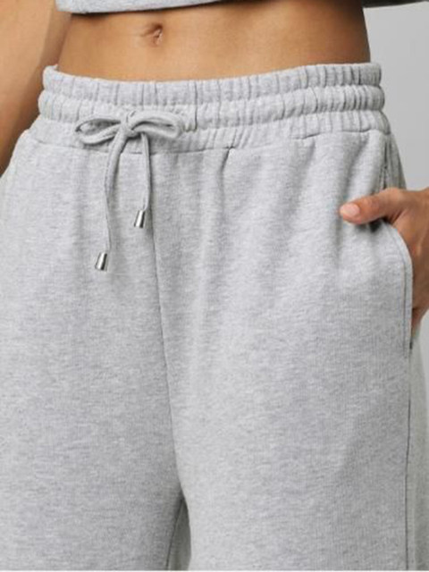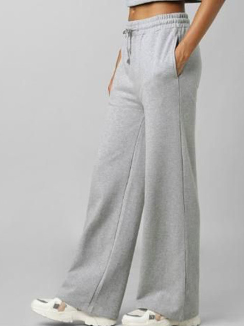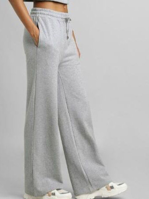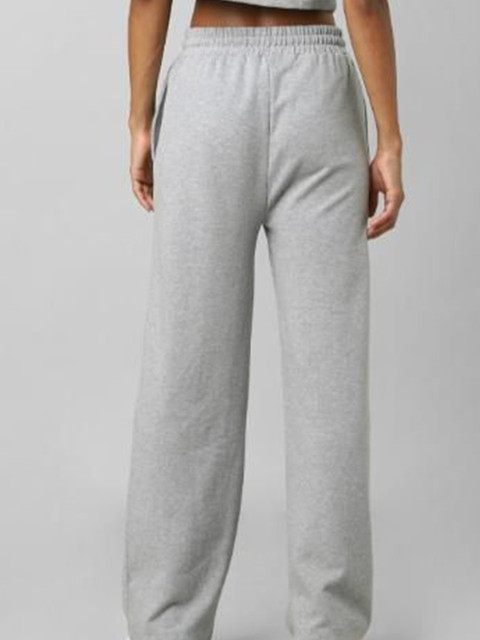 Grey solid relaxed-fit mid-rise track pants, has an elasticated waistband with drawstring closure and two pockets