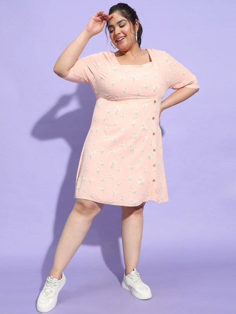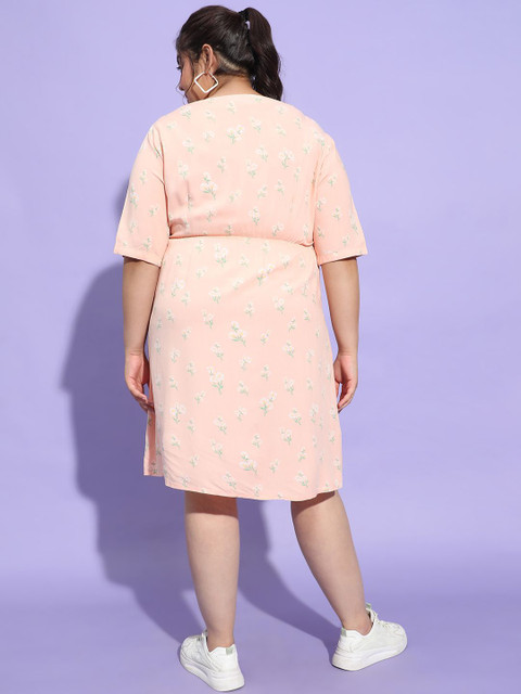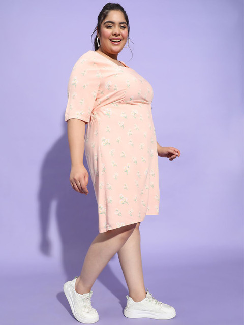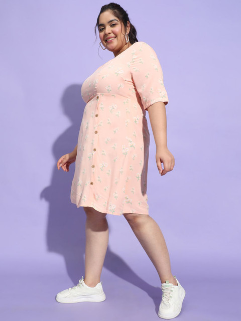 • Peach-coloured floral print a-line dress