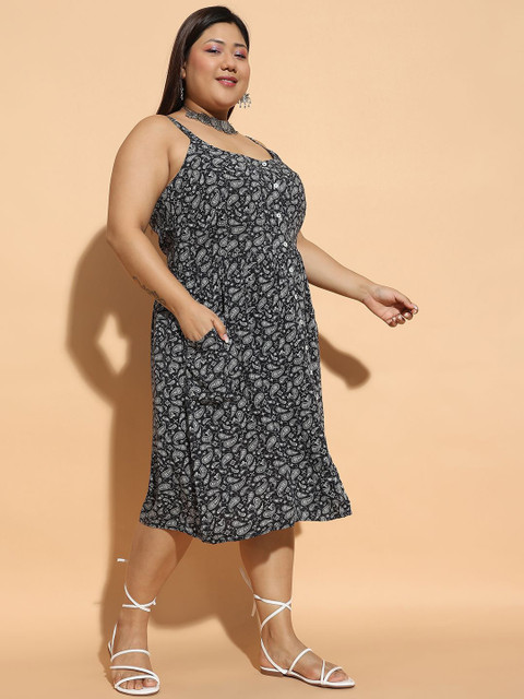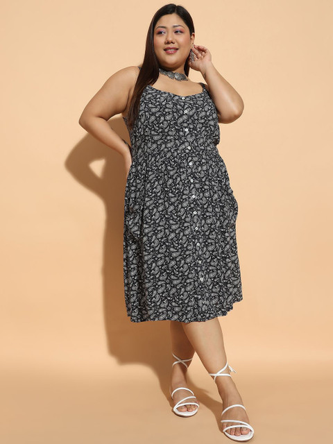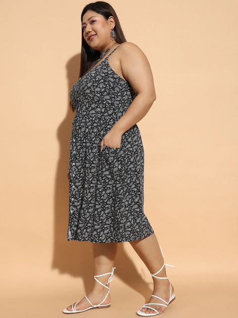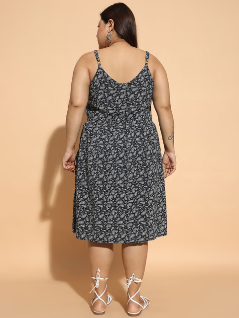 - Black floral print fit & flare dress